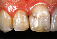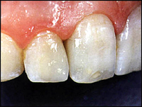 реставрации. Это может быть связано с тем, что в десневом желобке или