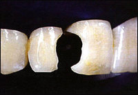 Правильная реставрация передних зубов при помощи микрогибридного композита, с последующим уходом во время периодических визитов (когда производится повторная полировка, уход и т.п.), считается более благоприятной, чем ношение коронок, которые дают менее благоприятный эстетический прогноз из-за разрушений зубной ткани и тканей пародонта.