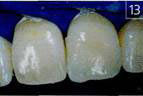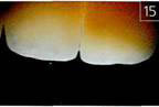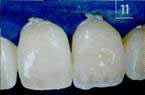 Массу OBN в бороздках между маммелонами необходимо наносить осторожно. Она должна достигать резцовой части над маммелонами для воспроизведения теневого эффекта. Эта масса наносится плоской кистью. Оттенки насыщенности (IW, IM) достигаются в тонком слое и наносятся инструментами небольшой площади до нанесения вестибулярной эмалевой массы. Анатомическая стратификация получает завершение посредством нанесения вестибулярной эмали, которая покрывает все уже имеющиеся массы.