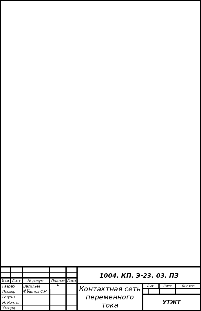Задание на курсовой проект ……………………………………………….. Введение ……………………………………………………………………. Данные для трассировки контактной сети на перегоне …………….... Основные данные проводов контактных подвесок …………………… Определение максимально допустимых длин пролетов контактных подвесок …………………………………………………………………. Схема питания и секционирования, её описание …………………….. Условные обозначения для схемы питания и секционирования и планов контактной сети …………………………………………………………. Схемы пропуска контактной сети в ИССО ……………………………. Технологический вопрос ……………………………………………….. Смета на сооружение контактной сети по станции и перегону ………