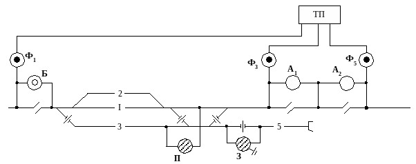 Питание данной станции и прилегающих перегонов осуществляется от ТП по 3-м фидерам. По 1-му фидеру через линейный разъединитель Ф1 с моторным приводом, находящимся во включенном положении, получает питание перегон, прилегающий к станции слева. По 3-му фидеру через линейный разъединитель Ф3 с моторным приводом, находящимся во включенном положении, получает питание главный путь данной станции. По 5-му фидеру через линейный разъединитель Ф5 с моторным приводом, находящимся во включенном положении, получает питание перегон, прилегающий к данной станции справа. Продольное секционирование выполняется со стороны ТП при помощи изолирующего сопряжения с нейтральной вставкой, с противоположной стороны при помощи изолирующего 3-х пролетного сопряжения, которое шунтируется продольными секционными разъединителями А1, А2 с ручным приводом, находящихся в отключенном состоянии и секционным разъединителем Б с моторным приводом, находящимся в отключенном состоянии. Поперечное секционирование выделяет путь №3 в отдельную электрическую секцию за счет монтажа секционных изоляторов в съездах и получает питание через поперечный разъединитель П с ручным приводом, находящимся во включенном положении. Путь №5, уходящий в тупик, предназначенный для погрузо-разгрузочных работ, отстоя ЭПС и осмотра крышевого оборудования, выделяют в отдельную электрическую секцию при помощи секционного изолятора, и получает питание через секционный разъединитель З с ручным приводом и заземляющими ножами, находящимся во включенном положении. Министерство путей сообщения Российской Федерации Уральский техникум железнодорожного транспорта