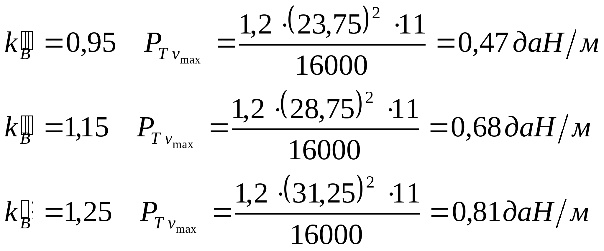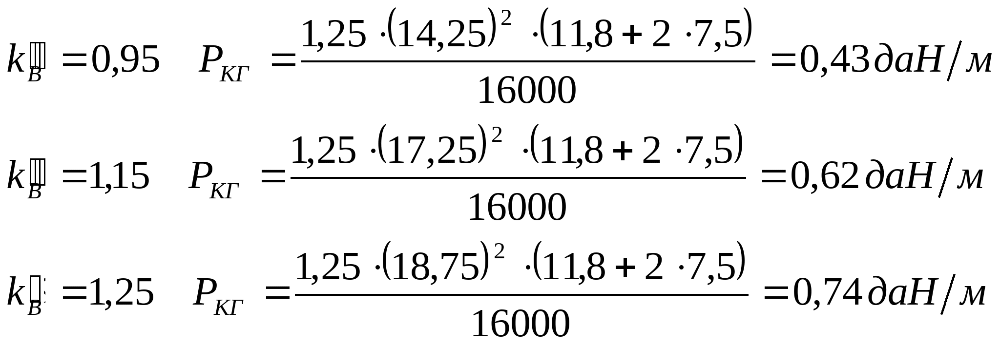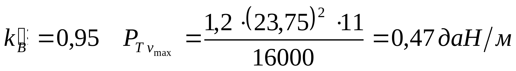 Нахождение расчетного режима Режим максимального ветра. Ветровую нагрузку на контактный провод в режиме максимального ветра, даН/м находим по формуле: , (3.1) где – аэродинамический коэффициент лобового сопротивления контактного провода; – максимальная скорость ветра, м/с; – высота сечения контактного провода, мм. Максимальную скорость ветра м/с находим по формуле: , (3.2) где – нормативная скорость ветра, м/с;  – коэффициент, учитывающий порывистость ветра и микрорельеф местности.
