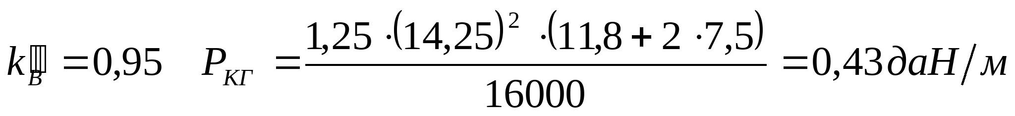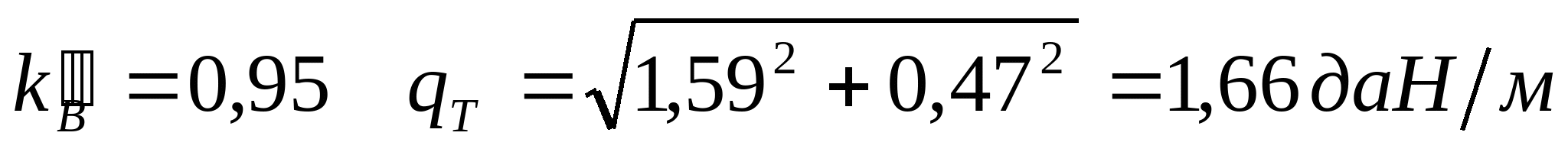Определение расчетных нагрузок В разделе 3.2 был найден расчетный режим. Им оказался режим максимального ветра. Вертикальная нагрузка на несущий трос, даН/м, от веса проводов контактной подвески:
