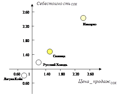 Изучив рисунок 14 можно сказать, что рынок мороженого имеет среднюю привлекательность, а вот производители обладают разной конкурентоспособностью и слабой, и средней, и высокой.