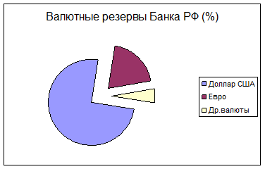 ЦБ РФ регулирует валютную структуру международных резервов с учетом мировой тенденции от долларового стандарта к многовалютному стандарту в условиях выдвижения евро на роль второй международной резервной валюты и других объективных факторов.