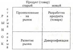 Рис. 2.Матрица продукт/рынок по И. Ансоффу