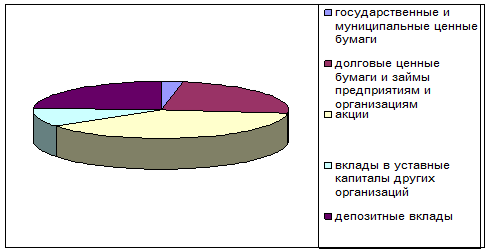 В структуре инвестиций данной организации долговые ценные бумаги и займы предприятиям и организациям имеют удельный вес, равный 25% инвестиционных вложений. Доля вложений в акции равна 40%. На вклады в уставные (складочные) капиталы других организаций приходится более 11% вложений. Вложения в депозитные вклады банков занимают 25% инвестиций.