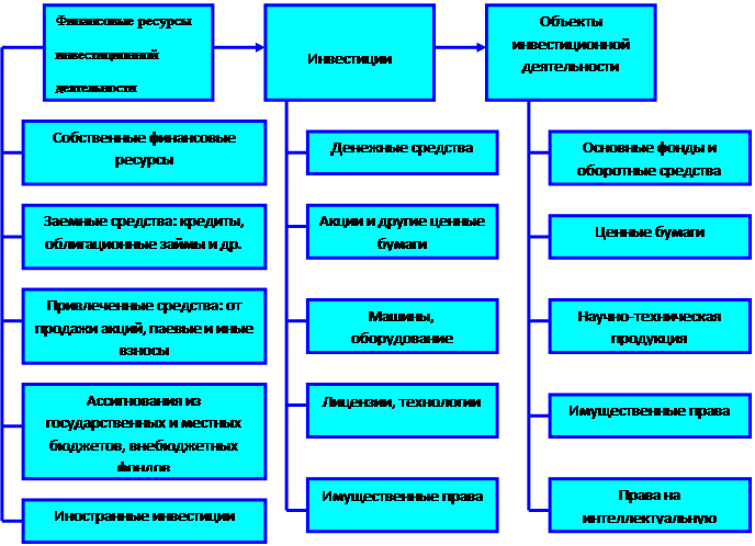 Финансовые ресурсы предприятия направляются на финансирование текущих расходов и на инвестиции, представляющие собой использование финансовых ресурсов в форме долгосрочных вложений капитала в целях увеличения активов и получения прибыли. Термин инвестиции происходит от латинского слова «invest», что означает «вкладывать».