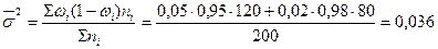 Выборочную дисперсию альтернативного признака вычислим по формуле .
