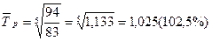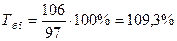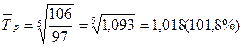 Тпр = Тр - 100% = 102,5 - 100 = 2,5%,