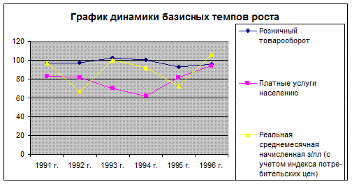 Имеются следующие данные по Российской Федерации за 1991—1996 гг., % по отношению к предыдущему году: