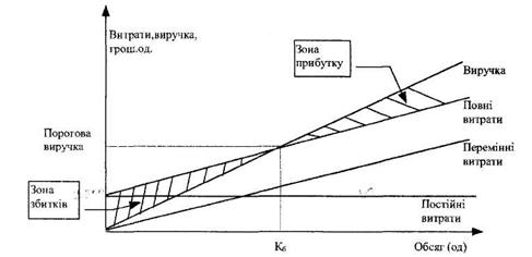 • 10-відсоткове зниження постійних витрат приводить до збільшення прибутку на 1,13%, а також дозволяє скоротити обсяг реалізації на 4,85% за умови збереження старого прибутку при нових постійних витратах.