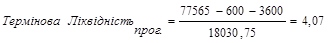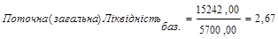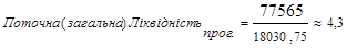 Коефіцієнт загальної ліквідності у базовому періоді склав 2,67, що є нормою згідно з загальноприйнятими міжнародними стандартами. Цей же коефіцієнт у прогнозному періоді склав 4,30. Таке перевищення (майже в 2 рази) є небажаним, оскільки може свідчити про нераціональну структуру капіталу.