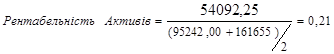 Рентабельність всіх активів підприємства показує, що 0,21 грошових одиниць треба фірмі для одержання однієї грошової одиниці прибутку, незалежно від джерела залучення цих коштів.