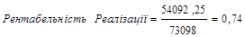 Рентабельність реалізації підприємства показує, що 0,74 грошових одиниць чистого прибутку принесла фірмі кожна грошова одиниця реалізованої продукції. Чим вищий цей показник, тим краще.