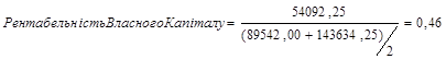 Рентабельність власного капіталу показує, скільки грошових одиниць чистого прибутку (0,46) заробила кожна грошова одиниця, вкладена власниками компанії.