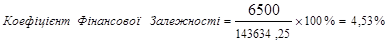 Коефіцієнт фінансової залежності склав 4,53%, тобто не є високим. Фірма не наражена на ризикову ситуацію, яка могла б привести до банкрутства.