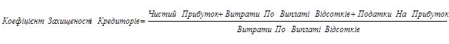 (чи покриття відсотка) характеризує ступінь захищеності кредиторів від невиплати відсотків за наданий кредит. Цей показник відображає також припустимий рівень зниження прибутку, що використовується для виплати відсотків.
