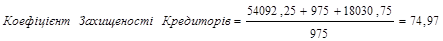 По коефіцієнту захищеності кредиторів судять, скільки разів - а саме, 74,97 - протягом звітного періоду компанія заробила коштів для виплати відсотків по позиках.