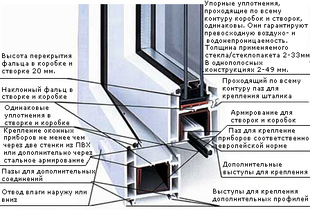 Система также обеспечивает хорошие показатели звукозащиты и производит простой водоотвод через наружную предкамеру. Камеры, в которых размещено армирование профилей, расположено таким образом, что, благодаря применению соответствующих металлических оцинкованных профилей, выполняются практически все статические требования в оконном производстве. Упорные уплотнения, проходящие по всему контуру коробок и створок, идентичны. Широкие поверхности примыкания уплотнений обеспечивают отличные показатели водо и воздухо-проницаемости и гарантируют коэффициент воздухопроницаемости до 0,1 мЗ