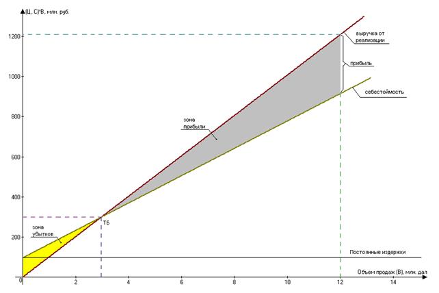 Анализ безубыточности определяет точку безубыточности – точку, при которой доходы от продаж равны издержкам производства. Точка безубыточности может быть также выражена в виде (производственных) произведенных физических величин или уровня используемых мощностей, при которых доходы от продажи и издержки производства равны.