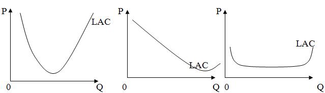 . Но существуют и другие кривые. Форма кривых долгосрочных средних издержек может подсказать ответ на вопрос, какие по масштабу фирмы преобладают в данной отрасли (кривые LAC
