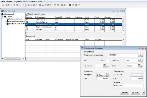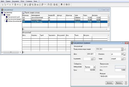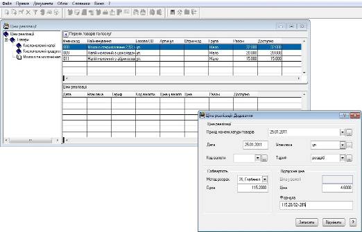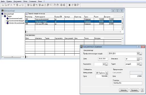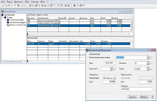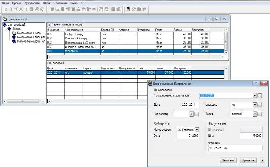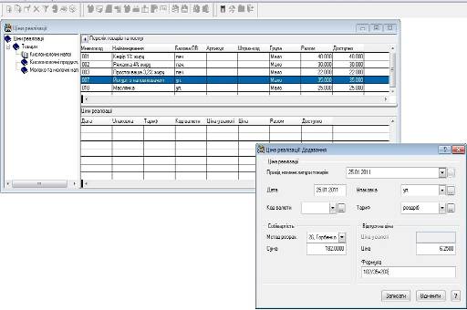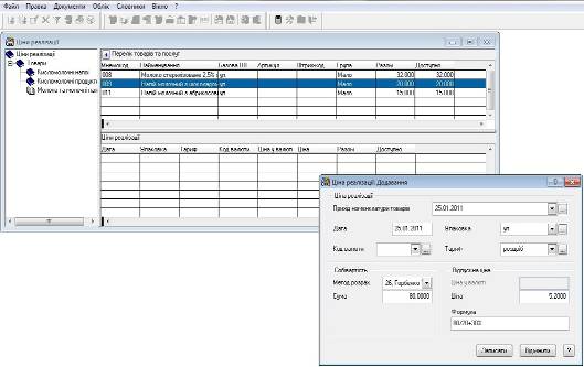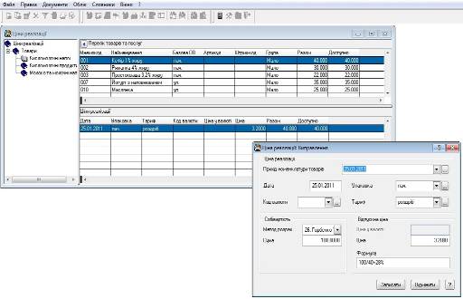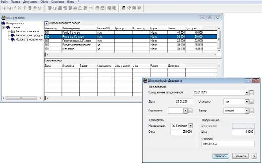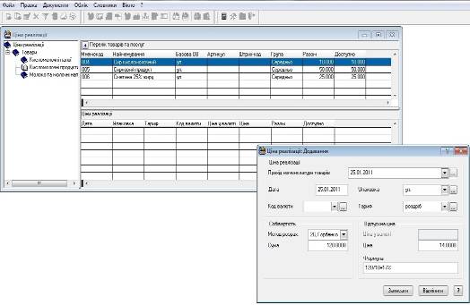 Якщо цін реалізації на необхідні номенклатурні позиції ще не вносили, або необхідні нові, більш актуальні ціни, то їх потрібно додати. В нашому випадку саме так, були внесені ціни закупівлі товарів при оформленні специфікацій прибуткових документів (в журналі „Прихід товарів”).
