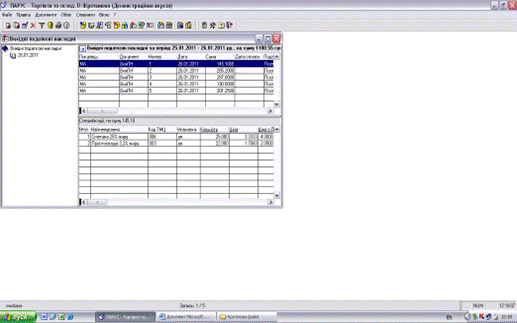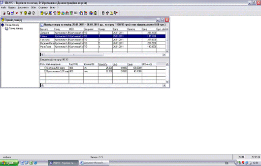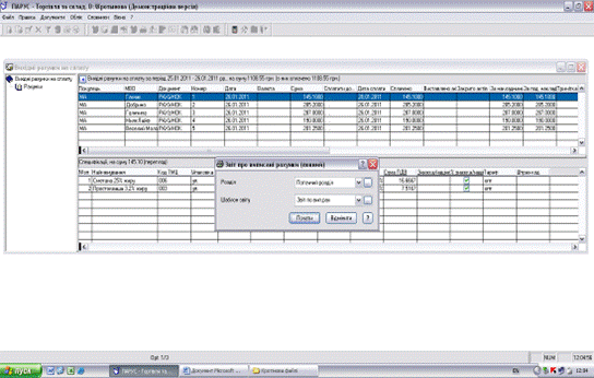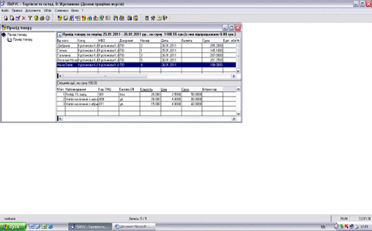 5. Підготування та друк документів і звітів в журналах рахунків та накладних системи «Парус - Торговля и склад 7.40».