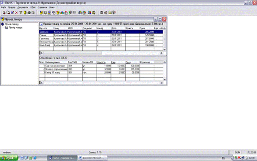 - перейдіть в праву верхню панель журналу «Прихід товару» одинарним клацанням лівої кнопки миші;