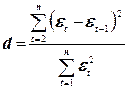 Таким образом, d есть отношение суммы квадратов разностей последовательных значений остатков к остаточной сумме квадратов по модели регрессии.