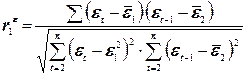Коэффициент автокорреляции остатков первого порядка определяется, как: