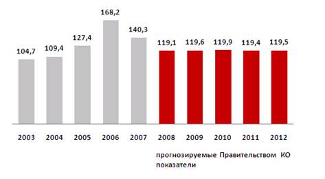 Динамика валового регионального продукта Калининградской области за последние несколько лет, предшествовавших мировому финансово-экономическому кризису, свидетельствует о высоких темпах роста экономики региона, значительно опережающих темпы роста экономики по России в целом.
