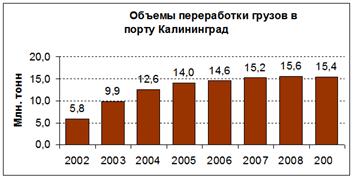 Вывод:Динамика роста грузооборота с 2001 до 2007 года – положительная. Однако в 2008 году объемы перевалки снижаются. Основная причина – неконкурентоспособные железнодорожные тарифы на калининградском направлении и экономический кризис.
