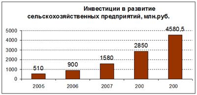 Вывод: наблюдается тенденция увеличения вложений в развитие сельскохозяйственных предприятий.