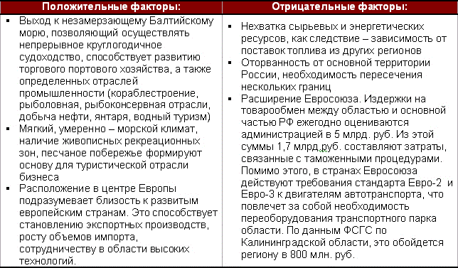 Факторы, оказывающие влияние на развитие экономики Калининградской области
