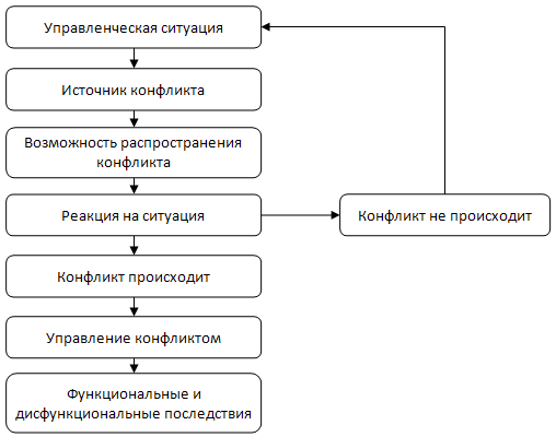 Дисфункциональный конфликт приводит к снижению личной удовлетворенности, группового сотрудничества и эффективности организации.