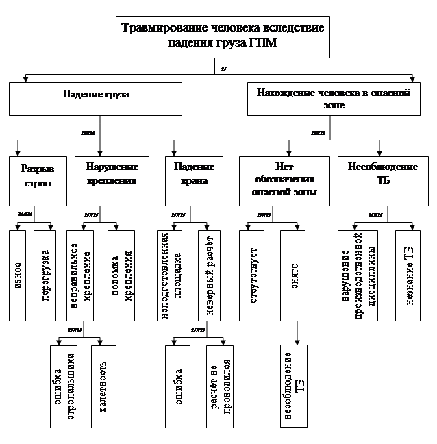 Рисунок 4 – Дерево причин травмирования человека вследствие падения груза ГПМ