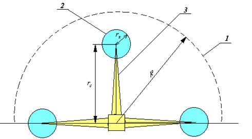 1 – граница опасной зоны; 2 – граница зоны возможного падения груза; 3 – стрела крана