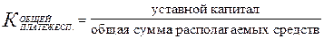 Если ликвидность предприятия показывает способность выполнять краткосрочные текущие обязательства, то платежеспособность - это способность предприятия выполнять (погашать) все свои внешние долги как краткосрочные, так и долгосрочные. Этот показатель наиболее точно показывает вероятность банкротства. Предприятие считается платежеспособным, если его общие активы превышают его внешние обязательства. Для измерения уровня платежеспособности используют специальный коэффициент, который показывает долю собственного капитала в его общих обязательствах краткосрочных и долгосрочных. Этот коэффициент рассчитывается по следующей формуле: