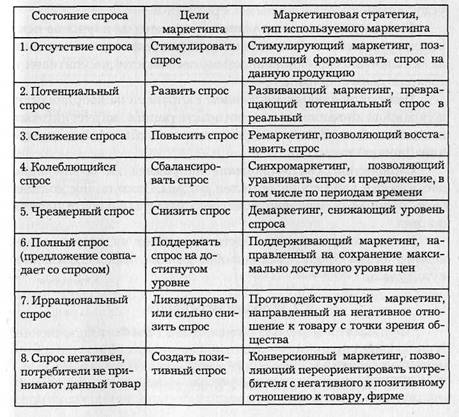 Типы маркетинга в зависимости от состояния спроса