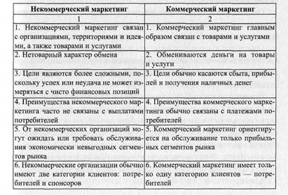 Основные различия между коммерческим и некоммерческим маркетингом