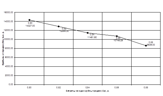Рисунок Г.1 – График зависимости прибыли от продаж от затрат на один рубль продаж
