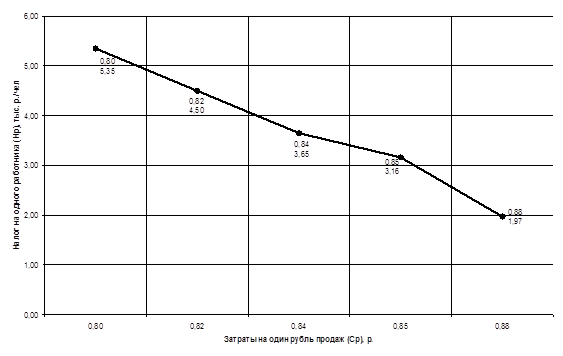 Рисунок Г.3 – График зависимости налога на одного работника от затрат на один рубль продаж
