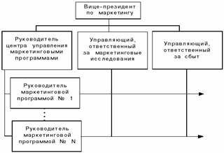Руководителю (проекта) программы, например, по освоению какого-то рынка определенной продукции передаются от руководства предприятия необходимые полномочия по распределению ресурсов, а также исполнению мероприятий, составляющих программу. Руководителю маркетинговой программы временно подчиняются не только сотрудники соответствующих маркетинговых служб, но также и сотрудники подразделений, занимающихся разработкой и доведением до производства соответствующего продукта. Таким образом, каждый участник работ по программе, находясь в штатном расписании соответствующего подразделения, имеет двойное подчинение: по линии программных работ он подчиняется руководителю маркетинговой программы, во всех остальных отношениях — своему линейному руководителю.