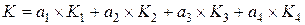 Формула для обобщенного показателя культуры сервиса K примет вид (для четырех аспектов)