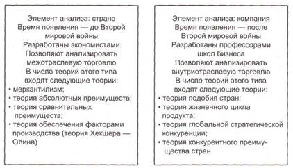 Из рисунка 1.1.1 видно, что все теории международной торговли делятся на классические теории, основой которых является деятельность страны, и современные, основой которых является торговая деятельность компании.