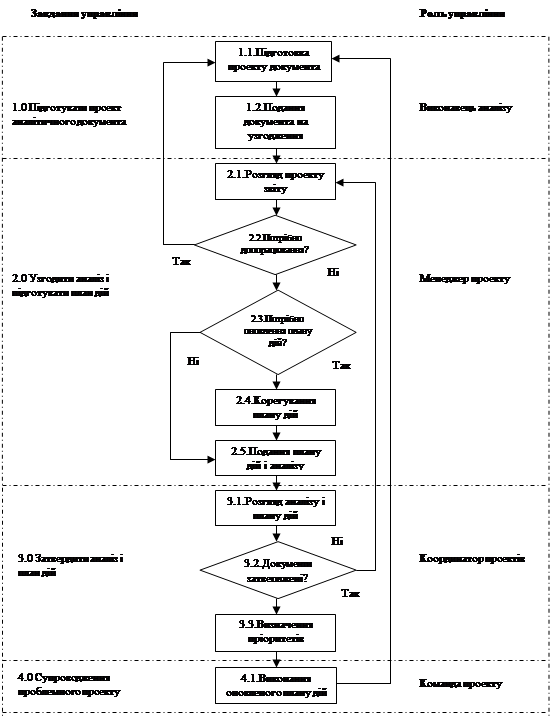 Взаємовідносини між членами проектної команди в ході прийняття рішень з проблемних питань щодо фінансування проектів наведені на блок-схемі.