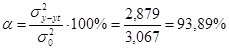 Затем определяем коэффициент случайной вариации как отношение остаточной дисперсии к общей дисперсии: