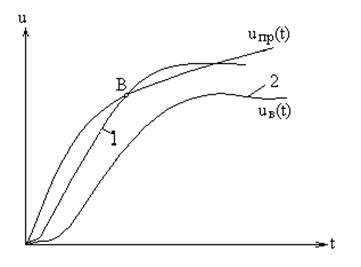 Максимальное напряжение в переходном процессе зависит от повторного пробоя межконтактного промежутка выключателя. Возможность повторного пробоя определяется соотношением между кривыми возрастания электрической прочности промежутков выключателя (2) и восстанавливающегося напряжения (1) (рис. 2.). Если кривая восстанавливающегося напряжения (кривая 1) пересечет кривую роста электрической прочности промежутков выключателя U