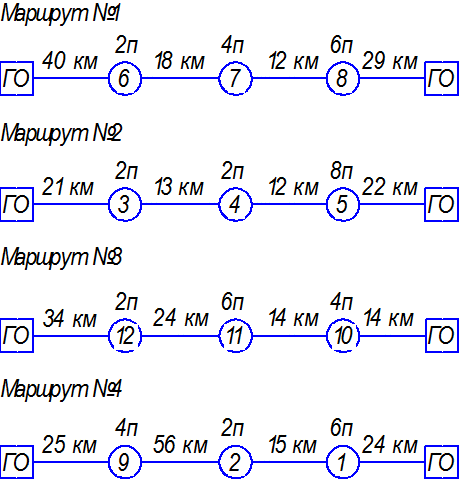 Произведенные расчеты ТЭП по всем полученным маршрутам сводим в общую таблицу: